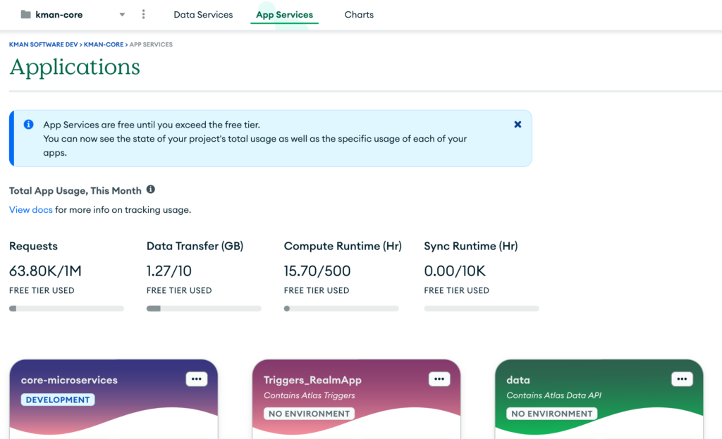 Click on the App Services tab and select the correct microservices app at the bottom.