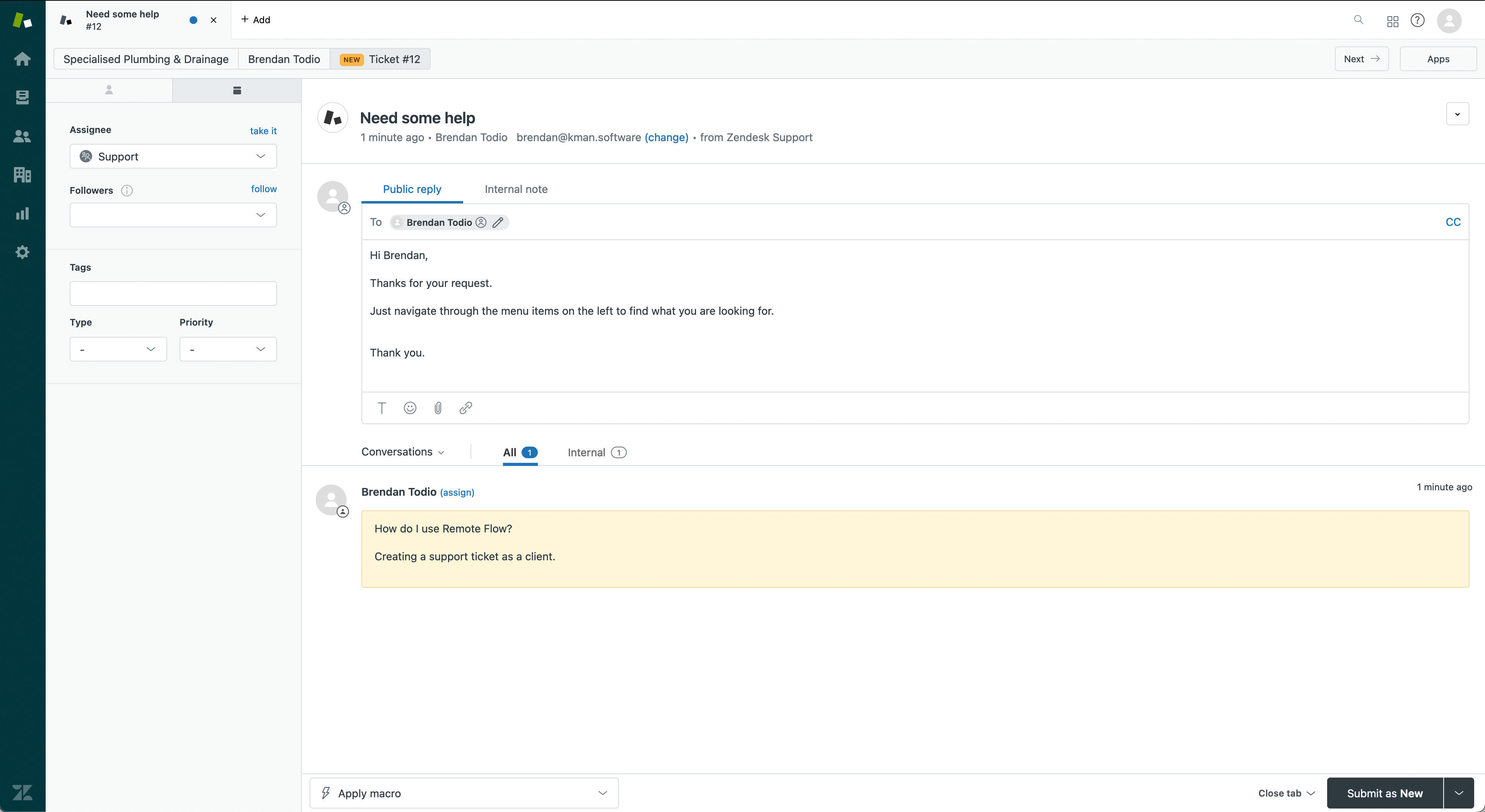 The ticket can be opened and comments can be added to send back to the Remote Flow user.