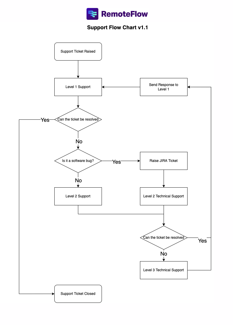 Support Ticket Flowchart See Ticket Management & Escalation for more details on how this flowchart operates. Doc navigation← Support System